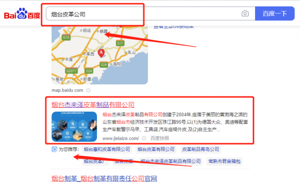 煙臺杰*澤皮革制品有限公司百度排名排名案例欣賞