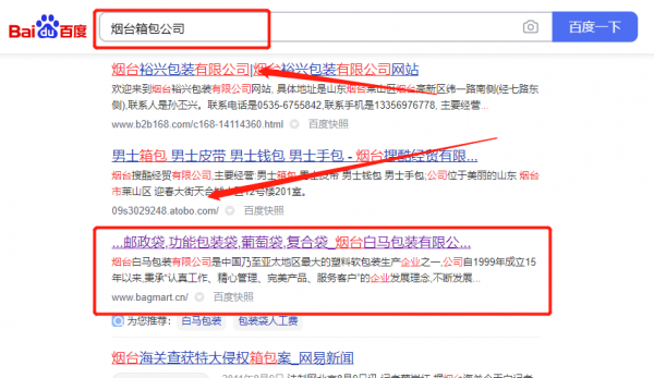 煙臺白*包裝有限公司選用我司企業箱包的網站優化產品,其SEO關鍵詞有箱包。各搜索引擎網絡營銷推廣,一站式策劃、建站、推廣等整合服務,快速提升曝光率、轉化率、成交率",技術面向客戶,沒有多余的中間環節費用,我們既要注重品質更要為你節約成本。煙臺白*包裝有限公司成立于1999年,是經煙臺市市場監督管理局審核的有資質的公司,其統一社會信用代碼:913706008**128384Y。公司地址:山東省煙臺市福山區電信路222號。