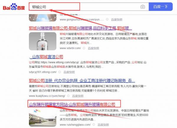 山東鄆城瑞*玻璃有限公司網站優化排名效果展示