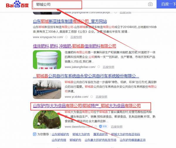 鄆城大*食品有限公司網站優化最快上詞效果展示