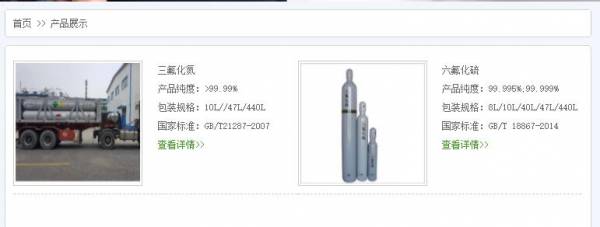 公司主要產品包括:三氟化氮、六氟化硫、六氟化鎢、四氟化碳、五氟化碘、六氟丁二烯、八氟環丁烷等。