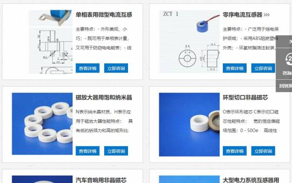 滑縣恒和電子有限公司選用我司企業電子元器件行業的網站優化產品,其SEO關鍵詞有 單相表用微型電流互感器,零序電流互感器,零序電流互感器,磁放大器用飽和納米晶磁芯,磁放大器用飽和納米晶磁芯。其特點是用很合適的展示方式、展示效果、站點框架,把客戶及其用戶很關心的問題突出表現;并以簡潔明朗的設計風格,清晰展現公司水平實力,確保一秒抓住目標用戶眼球,給用戶留下良好的第一印象。滑縣恒和電子有限公司成立于2014年,是經滑縣市市場監督管理局審核的有資質的公司,其統一社會信用代碼:91410526093222277J 。公司地址:河南省安陽市滑縣南站東1000米。