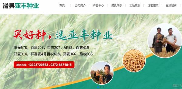 滑縣亞*種業科技有限公司選用我司企業農作物行業的網站優化產品,其SEO關鍵詞有 百旱207,百農207,Ak58,百農419,鄭麥314,群喜麥4號,百農418,鄭麥366,豫農035,優質小麥種,滑縣亞*種業科技有限公司。其特點是用很合適的展示方式、展示效果、站點框架,把客戶及其用戶很關心的問題突出表現;并以簡潔明朗的設計風格,清晰展現公司水平實力,確保一秒抓住目標用戶眼球,給用戶留下良好的第一印象。滑縣亞*種業科技有限公司成立于2017年,是經滑縣市市場監督管理局審核的有資質的公司,其統一社會信用代碼:91410526M***1JM05Q 。公司地址:滑縣留固鎮南500米路東。