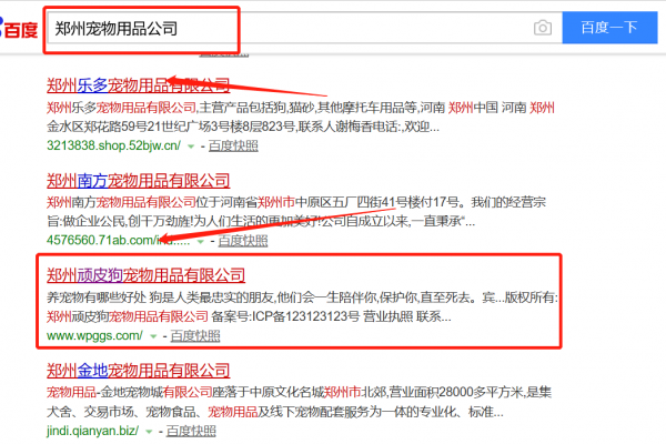 我們公司與鄭州頑皮狗寵物用品有限公司合作中,對(duì)這個(gè)公司所經(jīng)營(yíng)的寵物用品這個(gè)行業(yè)提供了百度快照排名,與該公司的合作,更多的客戶讓我們公司為其提供百度快照排名,通過(guò)每一次合作,我們公司不斷完善自己,同時(shí)希望合作伙伴在經(jīng)營(yíng)的路上越來(lái)越好。