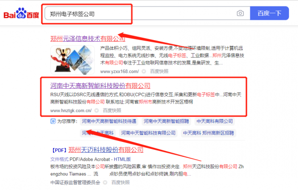 河南*天高新智能科技股份有限公司選用我司企業電子標簽的網站優化產品,其SEO關鍵詞有電子標簽。主要針對百度、搜狗、360等搜索引擎進行快速排名優化服務,關鍵詞排名必要條件是在搜索結果前3頁,周期15天內可優化到搜索引擎首頁。河南*天高新智能科技股份有限公司成立于2006年,是經鄭州市市場監督管理局審核的有資質的公司,其統一社會信用代碼:91410103**8090135J。公司地址:河南省鄭州高新技術產業開發區梧桐街66號。