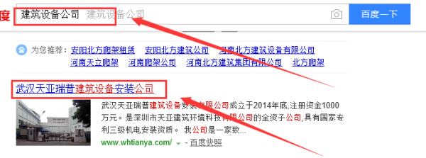 我們公司與武漢天亞瑞普建筑設備安裝有限公司合作中,對這個公司所經營的建筑設備這個行業的百度快照排名,積累了豐富的經驗;同時在該行業的百度快照排名等多元化的領域中也有很多的成功的案例;但愿通過我們的合作,能夠幫助到合作伙伴在同行業中遙遙領先。