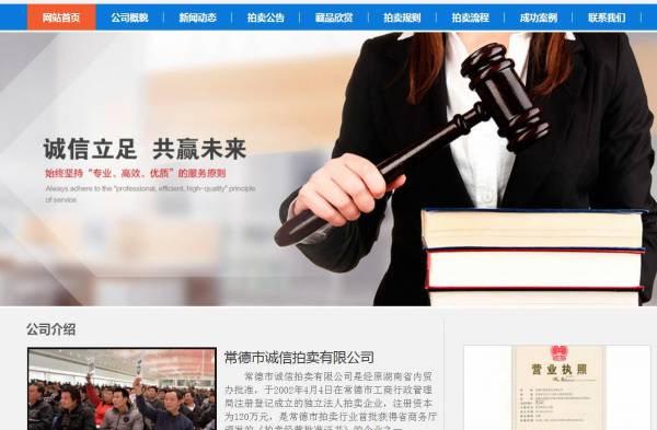 本公司是中國拍賣行業協會會員單位,是中國拍賣行業協會AA級資質企業評定的單位;是湖南省拍賣行業協會常務理事、常德市拍賣行業協會會長單位,被湖南省拍賣行業協會評為AAA信用企業;是常德市人民政府、常德市武陵區人民政府、常德市安鄉縣人民政府國有資產及公物指定拍賣單位;是常德市中級人民法院司法拍賣、常德市國資委國有資產拍賣、常德市非稅局收入征收管理局罰沒物資拍賣機構指定單位;是常德市拍賣行業首批獲得湖南省拍賣行業協會“誠信經營示范企業”稱號的企業;2003年-2017年連續被省工商行政管理局、常德市工商局授予省級“守合同重信用單位”稱號、市級“守合同重信用單位”稱號;作為取“誠信”字號的拍賣公司,更懂得誠信的珍貴。