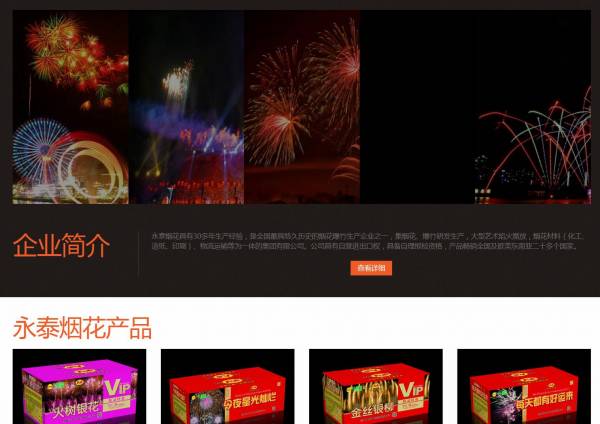 瀏陽市*泰出口煙花制造有限公司選用我司企業(yè)化工原料行業(yè)的網(wǎng)站優(yōu)化產(chǎn)品,其SEO關鍵詞有 永泰煙花,永泰花炮,瀏陽花炮,出口花炮,盆花,禮花。其特點是用很合適的展示方式、展示效果、站點框架,把客戶及其用戶很關心的問題突出表現(xiàn);并以簡潔明朗的設計風格,清晰展現(xiàn)公司水平實力,確保一秒抓住目標用戶眼球,給用戶留下良好的第一印象。瀏陽市*泰出口煙花制造有限公司成立于2005年,是經(jīng)瀏陽市市場監(jiān)督管理局審核的有資質(zhì)的公司,其統(tǒng)一社會信用代碼:91430181732***0547。公司地址:瀏陽市太平橋鎮(zhèn)合盛村。