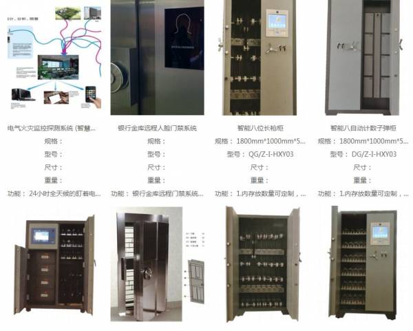 主要設(shè)備:數(shù)控液壓沖床、數(shù)控折彎機(jī)、數(shù)控剪板機(jī)、數(shù)控萬能銑床、數(shù)控點(diǎn)焊機(jī)、進(jìn)口靜電噴涂生產(chǎn)線。主要產(chǎn)品:智能槍彈保險(xiǎn)柜、智能槍庫專用門、生物指紋聯(lián)網(wǎng)保險(xiǎn)柜、生物指紋聯(lián)網(wǎng)提款箱、銀行設(shè)備大型聯(lián)網(wǎng)管理系統(tǒng)、礦山炸藥庫、金庫房、金庫門、ATM機(jī)銀行專用守護(hù)神、電器安全智能預(yù)警系統(tǒng)、監(jiān)控、遠(yuǎn)程監(jiān)控聯(lián)網(wǎng)系統(tǒng)、安防器材、鈔票清分機(jī)、防盜報(bào)警器、點(diǎn)鈔機(jī)、警用裝備、防彈衣、防彈頭盔、銀行珠寶箱、檔案密集架、信號屏蔽儀、計(jì)算機(jī)軟件開發(fā)、智能鎖具研發(fā)、生產(chǎn)、銷售等產(chǎn)品。